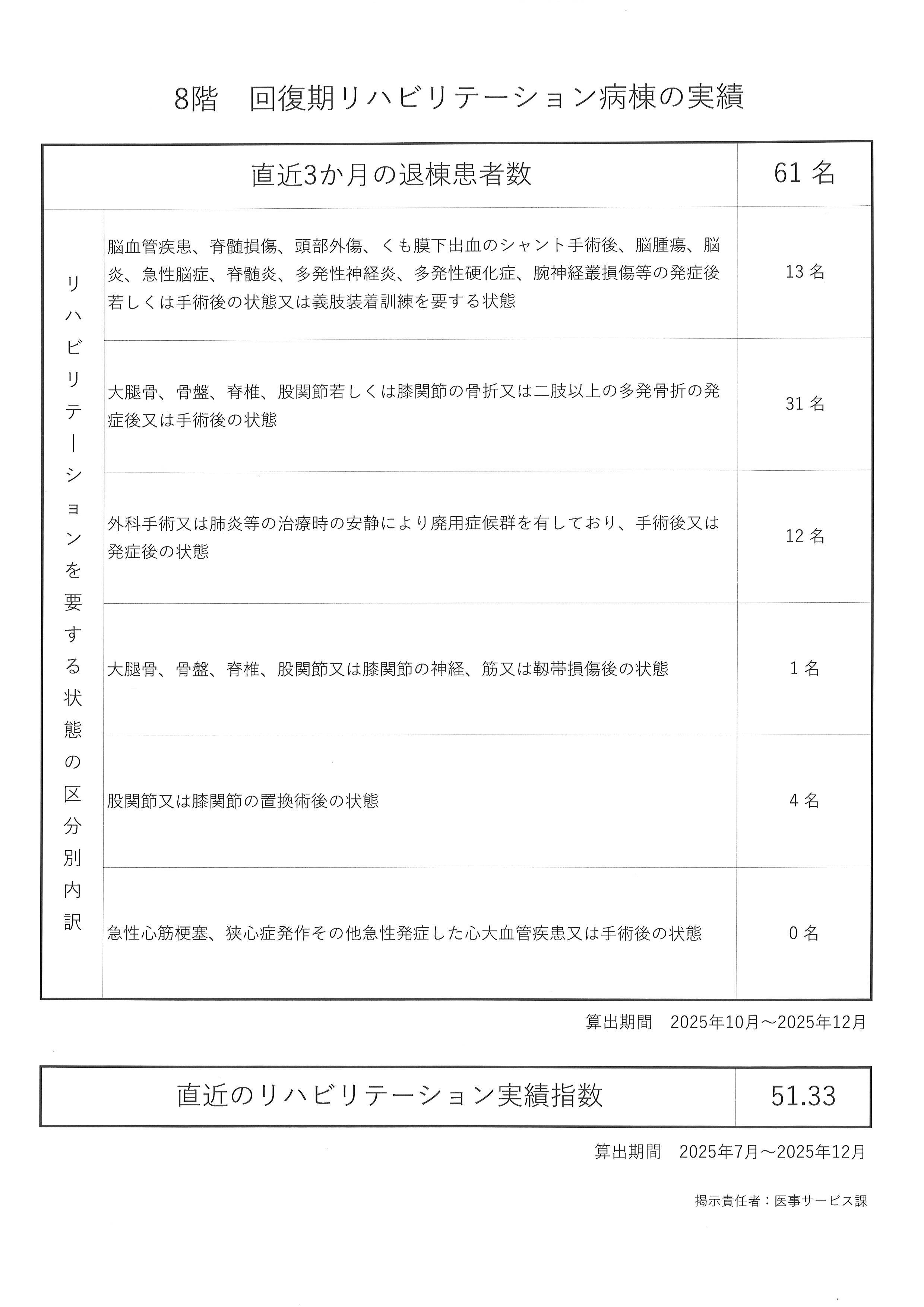 | 令和7年6月 | 回復期リハビリテーション病棟(37床) |